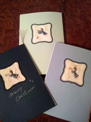刺繍した布を下から貼り付けて カードに仕立てる。