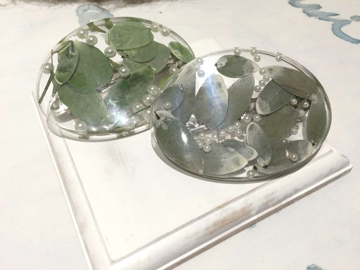 自然を感じられるユーカリの葉に、パールが組み合わさることで