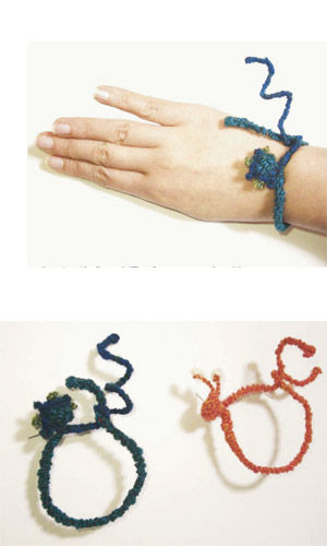 伸縮性と保温効果の高い糸を、今回は形状記憶繊維に巻きつけて《やわらかブレスレット》に仕上げます。