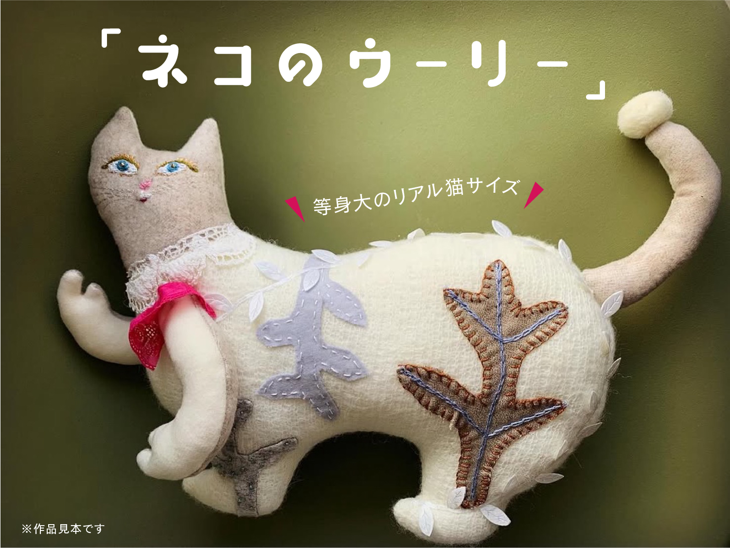 ウールで作るクッションタイプのネコにんぎょうを作ります。等身大のリアル猫サイズです。