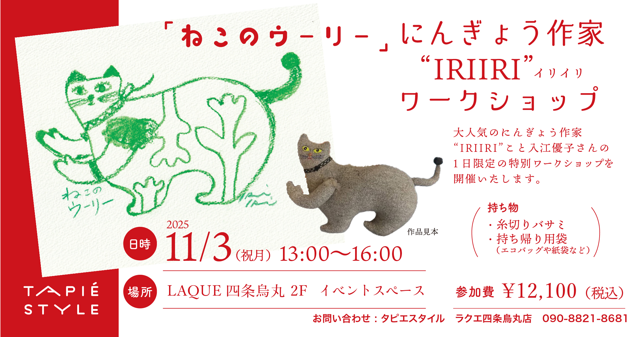 大人気のにんぎょう作家 “IRIIRI” こと入江優子さんの1日限定の特別ワークショップを開催いたします。