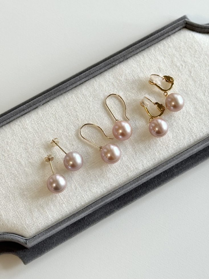 8.5mm淡水パール(染めていないナチュラルピンクカラー)イヤリング silver・K10¥31,900/フックピアス K10¥34,100/