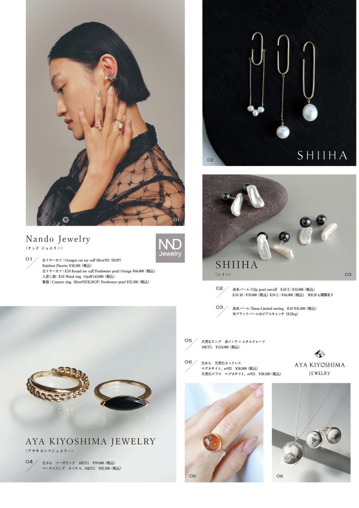 身に着ける人の個性を引き立てるジュエリーがコンセプト。流行にとらわれないデザイン、天然石を活かした1点物のアイテムを中心に、お客様に長く使って頂けるジュエリーを提案するブランド。