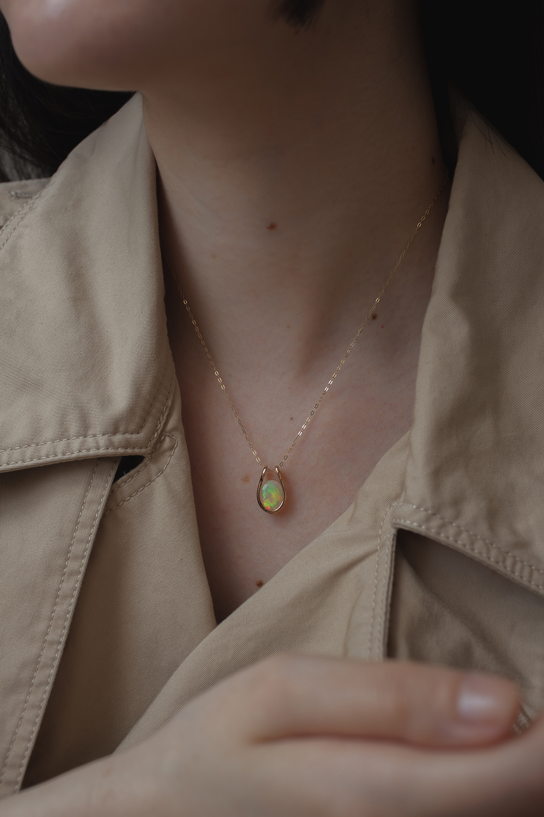 a-corinne(エーコリーヌ)では、デザイナーが厳選した天然石やパールを主にK10YGを使い華奢で繊細なジュエリーにお仕立てしています。お守りの石を美しく纏っていただきたいという思いから、着けた人を美しく輝かせるデザインになるよう心がけています。