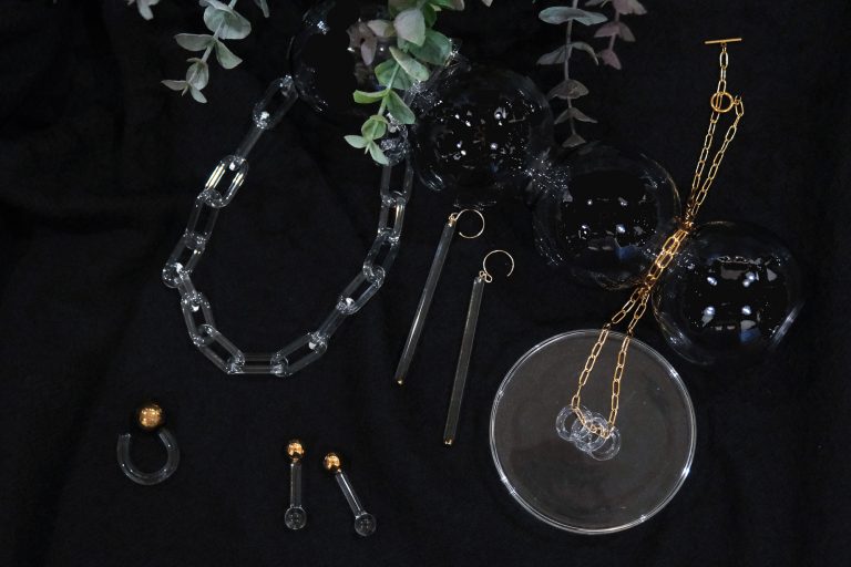kuuma(クーマ) は、フィンランド語で「暑い」を意味します。1500度を超える炎の中で、ガラスは少しずつ形を変え、点と線がつながって、唯一無二のかたちが生まれます。その瞬間の美しさをとどめるように、どこにもない、一つだけのジュエリーを制作しています。