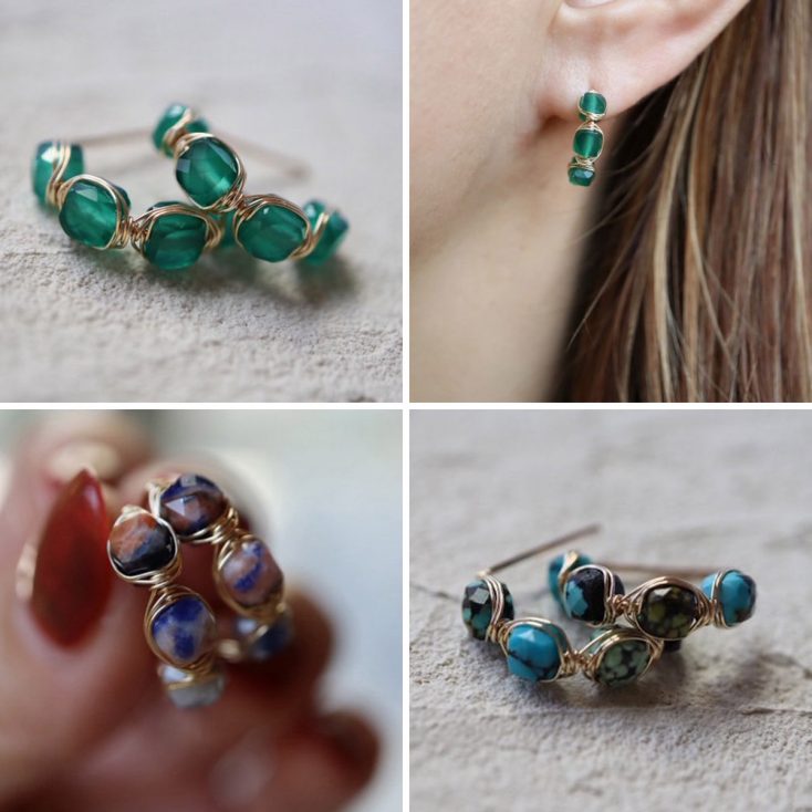 今回、京都での委託販売にあわせて初お披露目となる「スクエアストーンのEnLoopピアス」は、希少な天然石を使用した13色限定。石の確保が難しいため、再販は未定です。