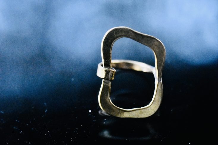 シンプルなのにユニーク、軽やかなのに印象的。丸でも四角でもない気まぐれなカタチを楽しむ真鍮リング。9,900円