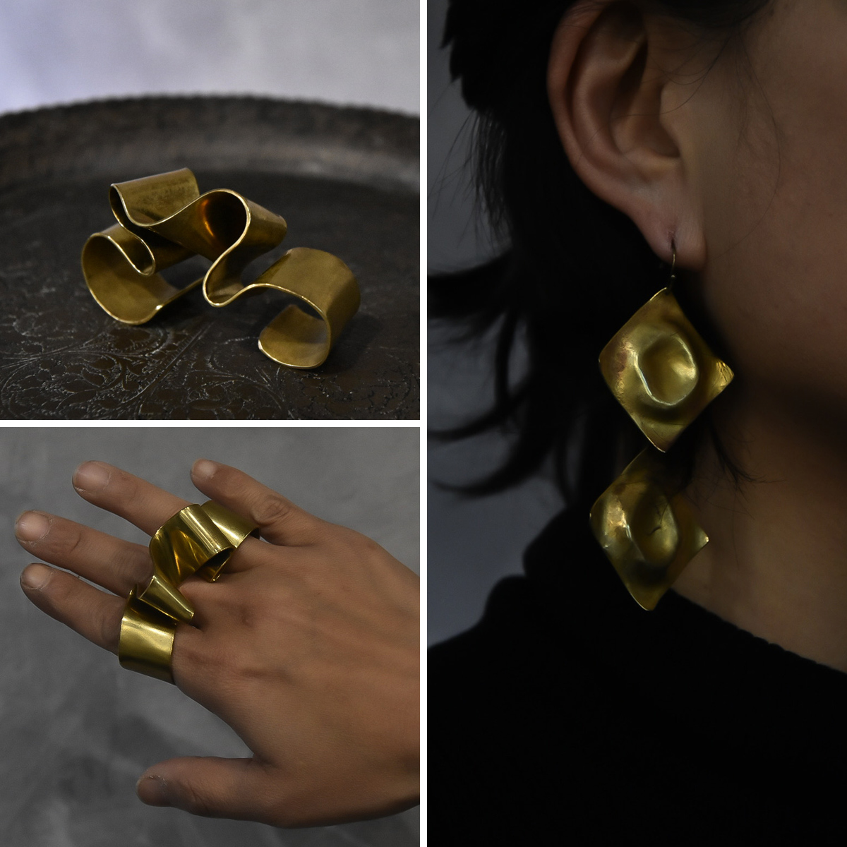 真鍮アクセサリーの特徴のひとつは、新品のゴールドのような輝きから、使い込むほどにアンティーク調の深みへと変化する経年変化です。