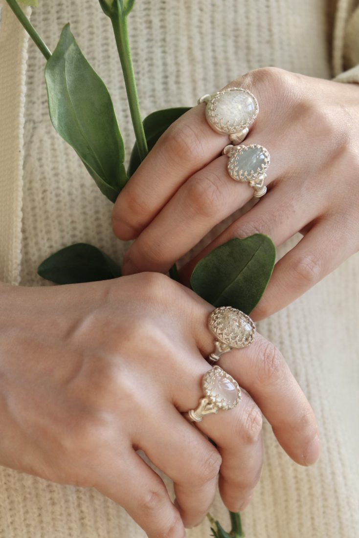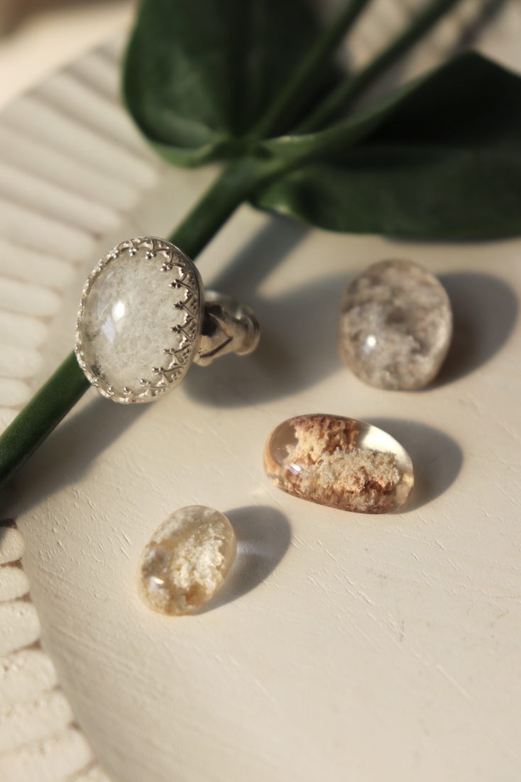 会期中は、純白のガーデンクォーツをはじめ、新しい始まりをそっと後押ししてくれる天然石をご用意しています。